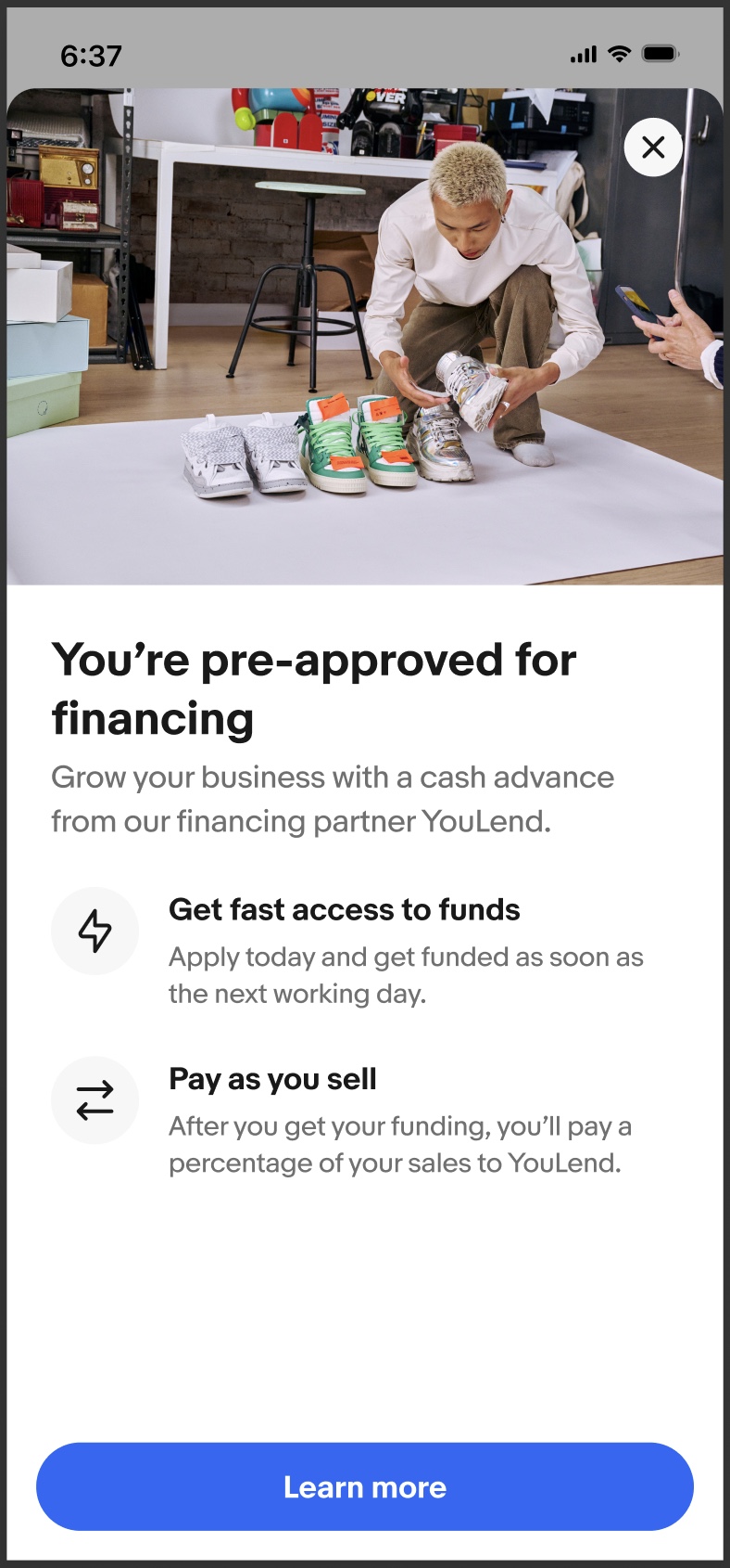 We designed an end-to-end product experience that educates sellers on their different financing options, helps them